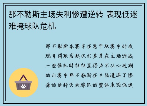 那不勒斯主场失利惨遭逆转 表现低迷难掩球队危机