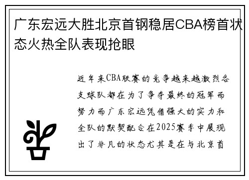 广东宏远大胜北京首钢稳居CBA榜首状态火热全队表现抢眼