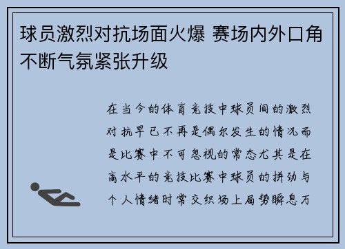 在当今的体育竞技中,球员间的激烈对抗早已不再是偶尔发生的情况,而是比赛中不可忽视的常态。尤其是在高水平的竞技比赛中,球员的拼劲与个人情绪时常交织,场上局势瞬息万变,气氛也因此愈加紧张。随着比赛进程的推进,球员间的身体对抗愈发激烈,场外的口角...