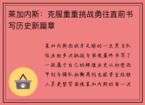 莱加内斯:克服重重挑战勇往直前书写历史新篇章