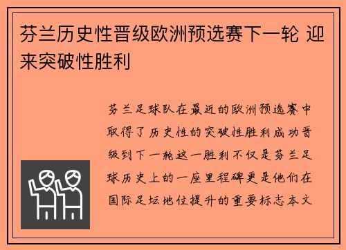 芬兰历史性晋级欧洲预选赛下一轮 迎来突破性胜利