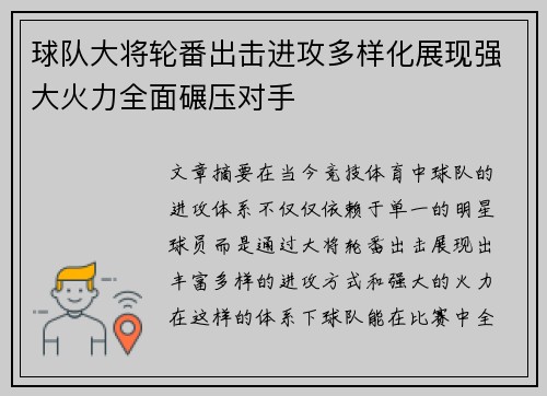 球队大将轮番出击进攻多样化展现强大火力全面碾压对手